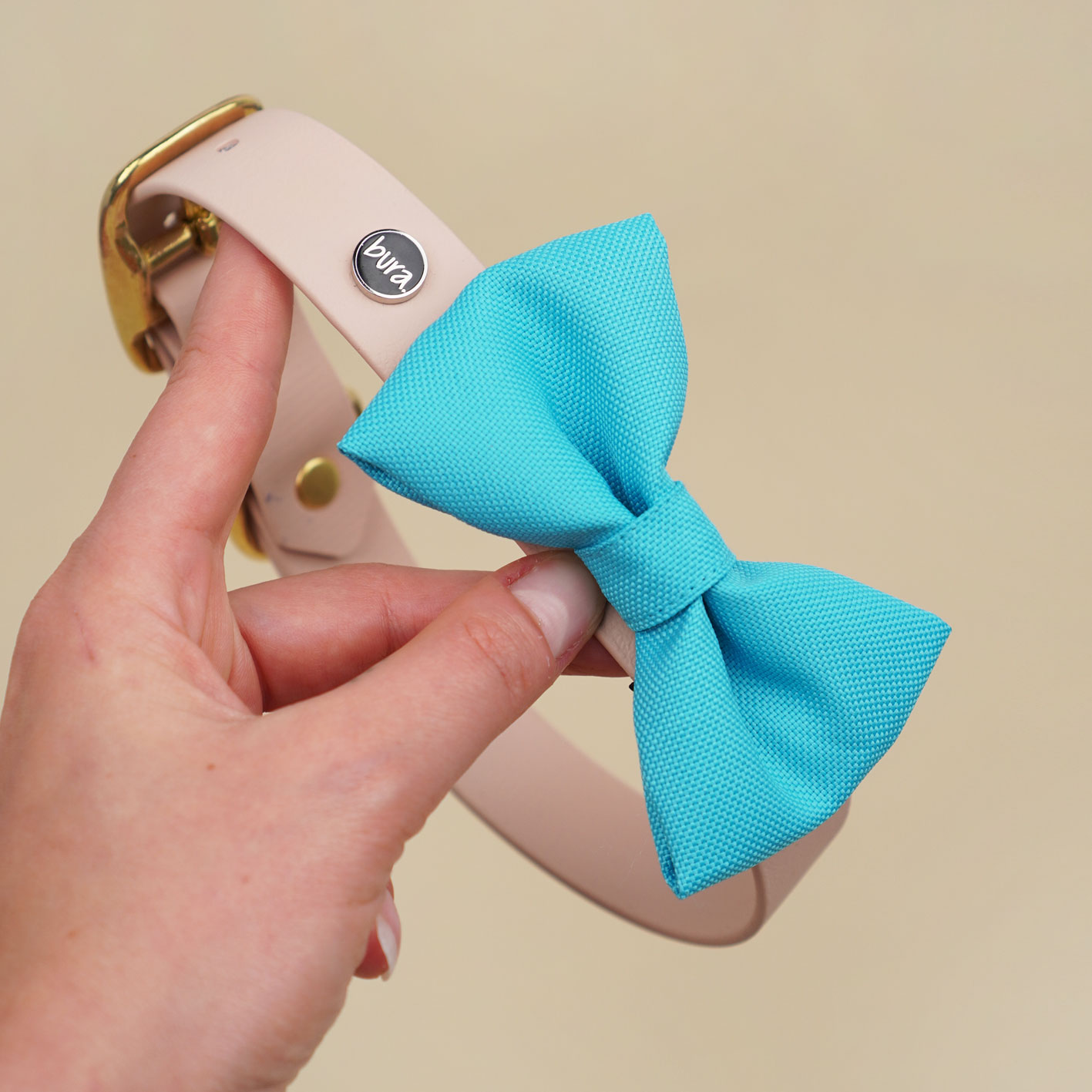 Błękitna kokarda, która w sekundę dodaje psu nutę elegancji.