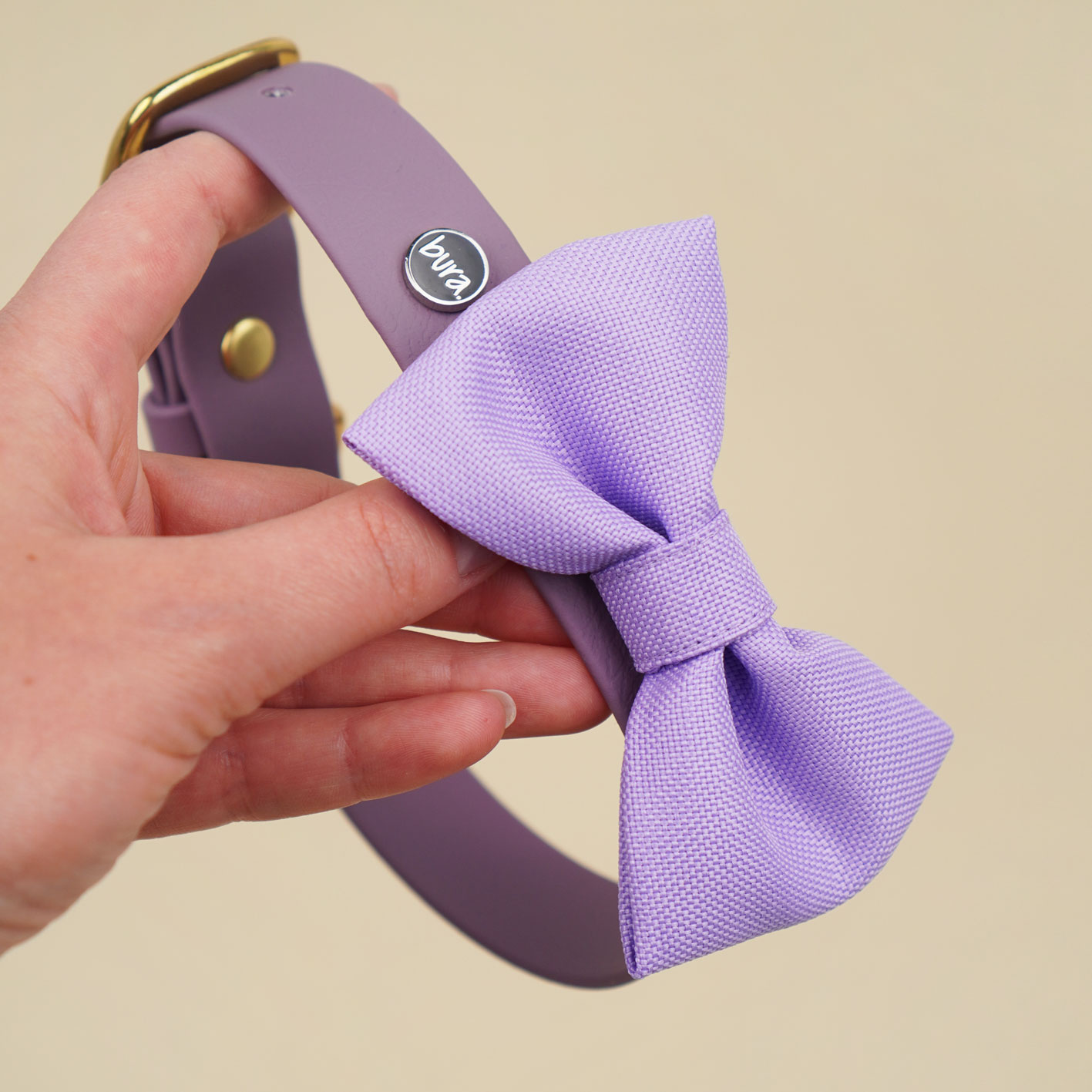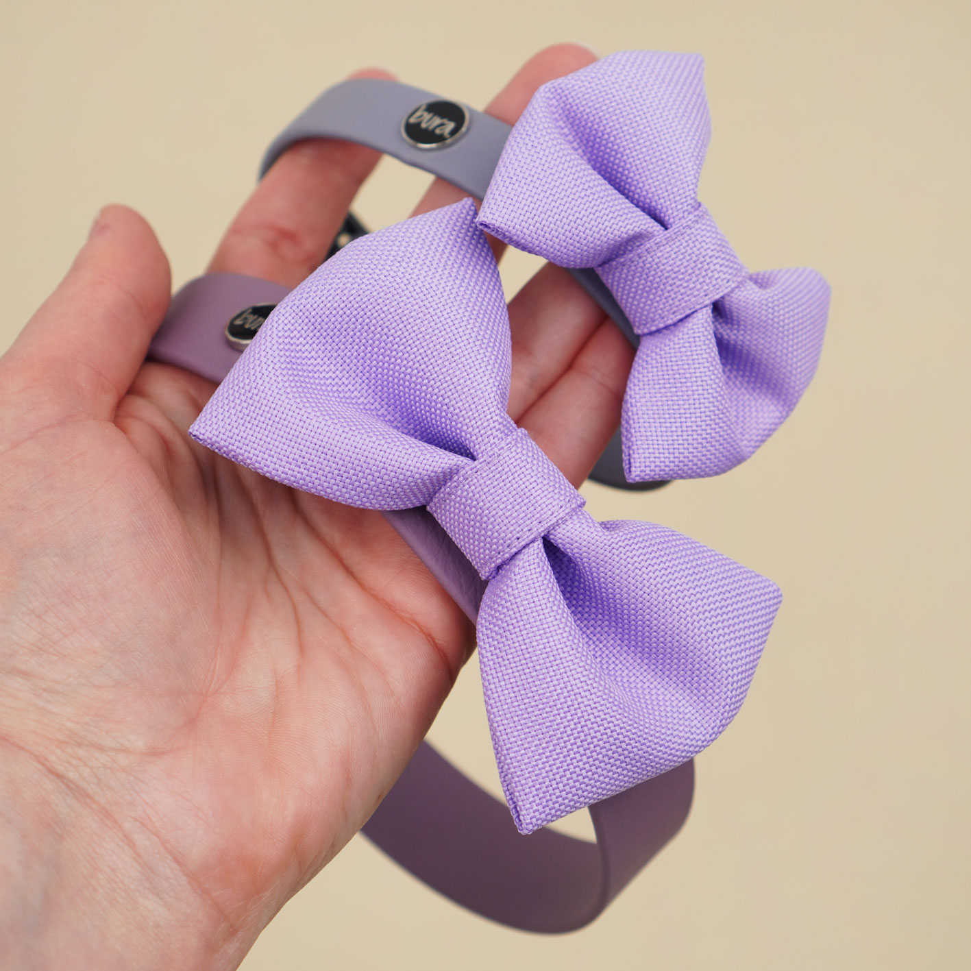 Kokarda dostępna jest w kolorze liliowym – klasycznym, eleganckim i bardzo wyrazistym. Idealnie łączy się z obrożami z Biothane oraz dodatkami Bura: etui na kupoworki, saszetkami na smaczki czy innymi akcesoriami z tego samego zestawu. Jeśli lubisz spacerowe matchy-matchy, ten kolor daje naprawdę dużo możliwości.