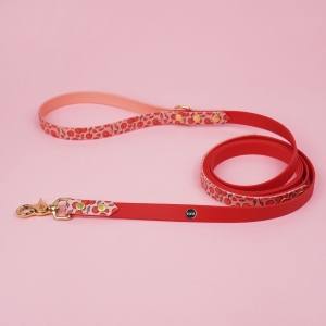 Smycz miejska Biothane Wiśnie i serduszka / łososiowy róż, czerwony
