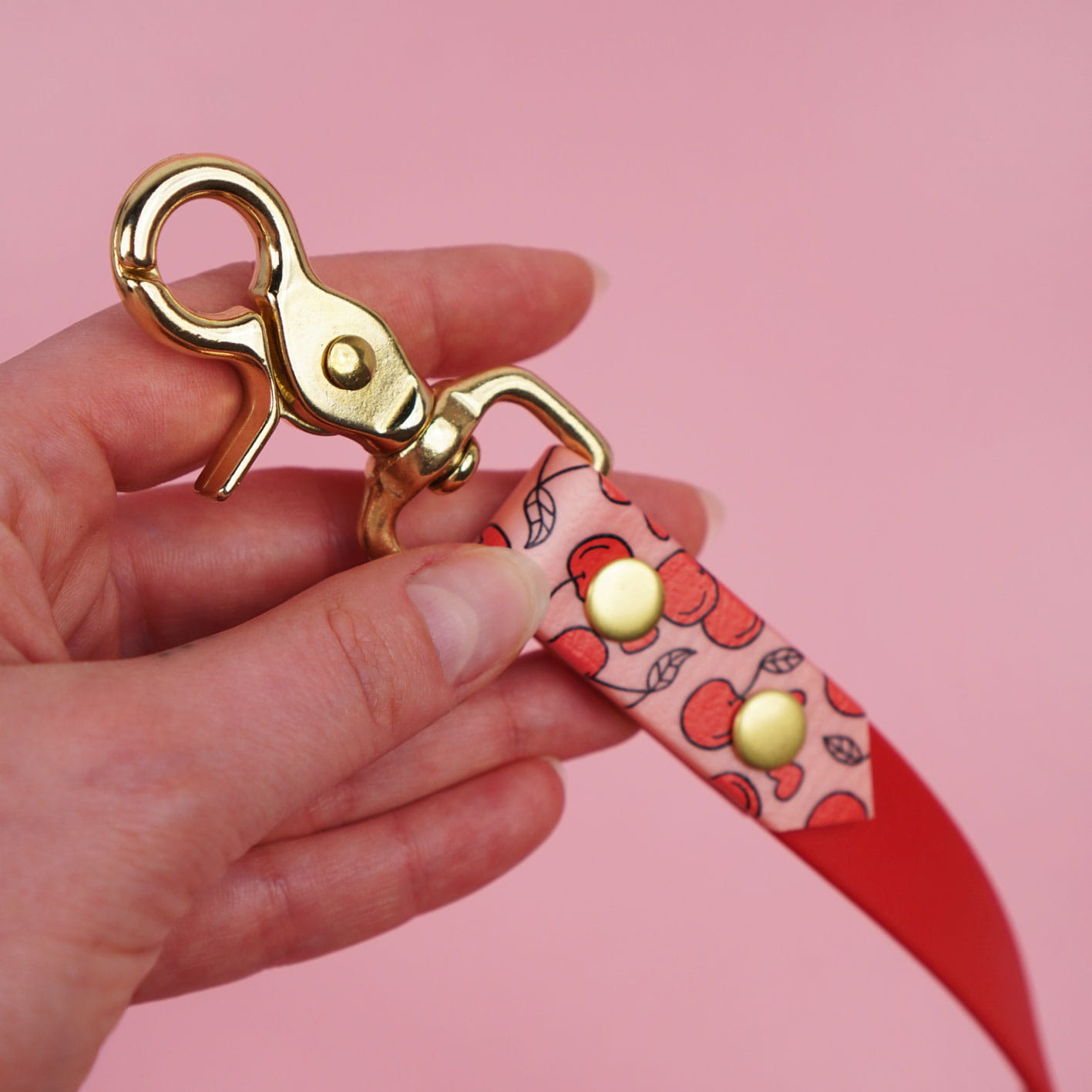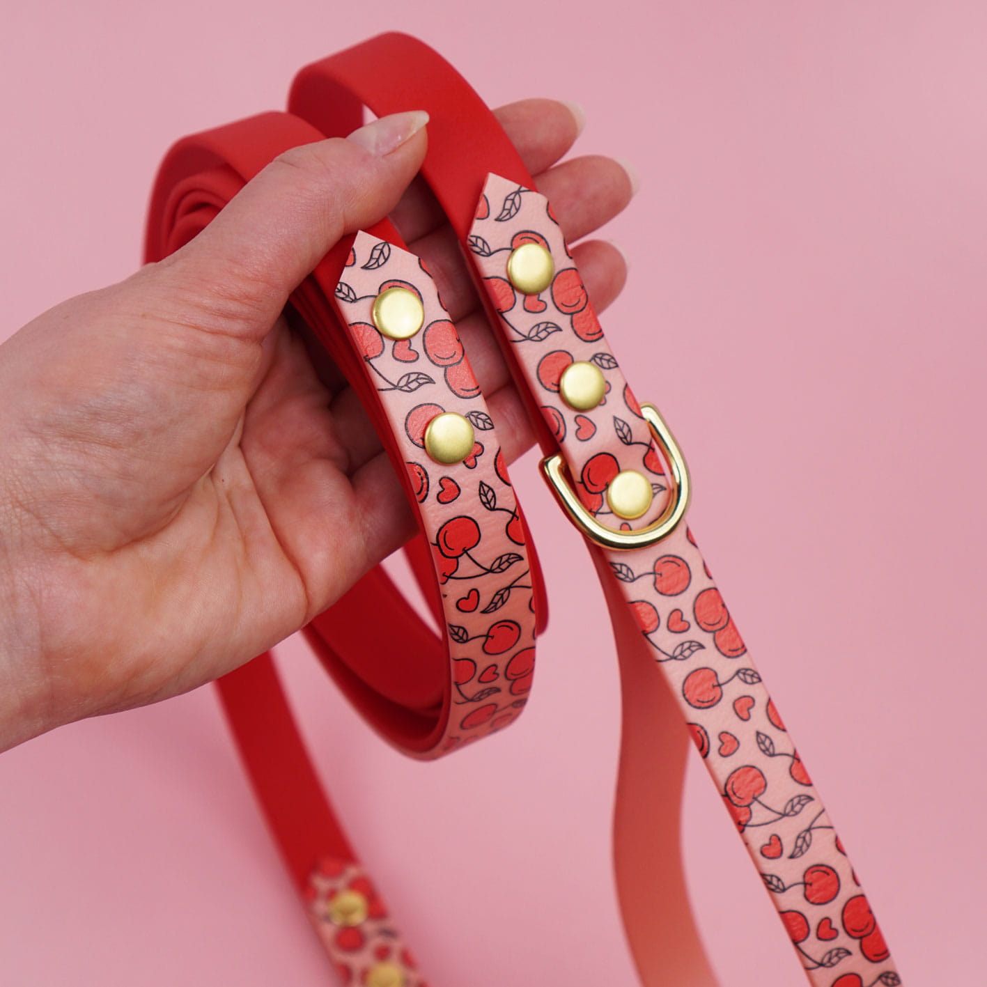 Smycz miejska z Biothane z autorskim wzorem Wiśnie i serduszka – lekka, wodoodporna i zawsze pod ręką. Idealna na codzienne spacery po mieście i szybkie wyjścia z psem. Wygodna, trwała i odporna na każde warunki, a uroczy motyw Wisienek dodaje jej charakteru w każdym otoczeniu.