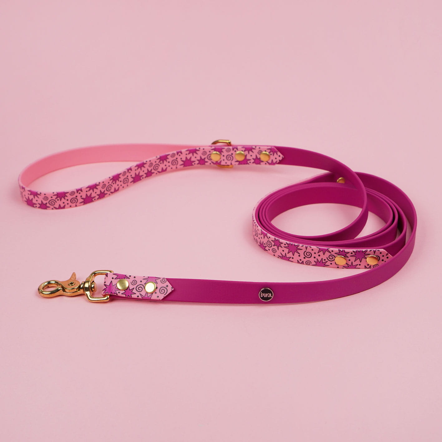 Smycz miejska Biothane Gwiazdki / pastelowy róż, magenta