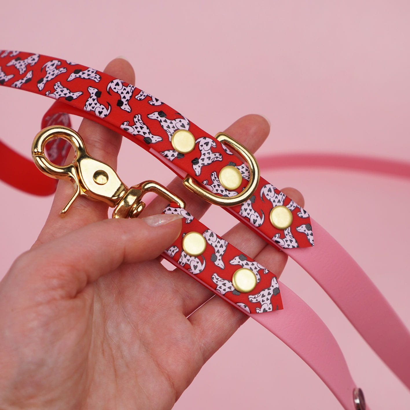 Smycz miejska z Biothane w czerwono-różowej odsłonie z autorskim printem Walentynkowy AZOR – lekka, wodoodporna i zawsze pod ręką. Idealna na codzienne spacery po mieście i szybkie wyjścia z psem. Wygodna, trwała i odporna na warunki terenowe, a print z kolekcji Walentynkowy AZOR wyróżnia ją w każdym otoczeniu.