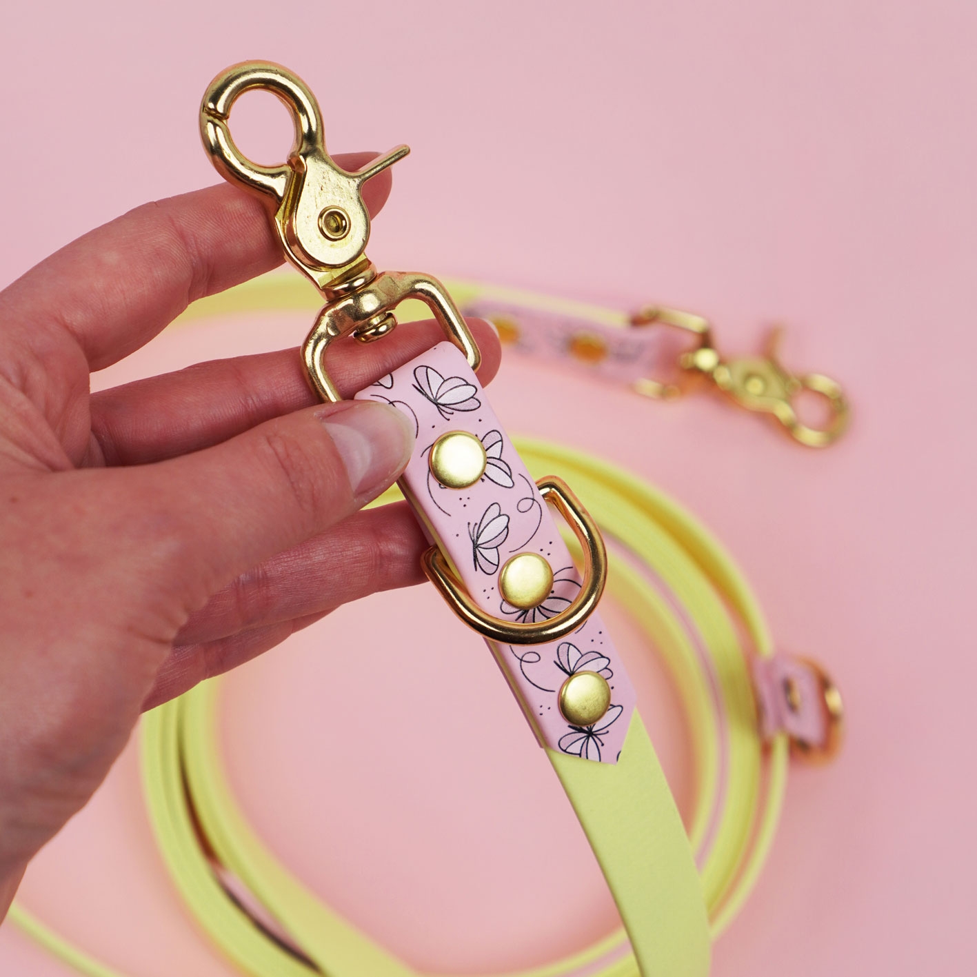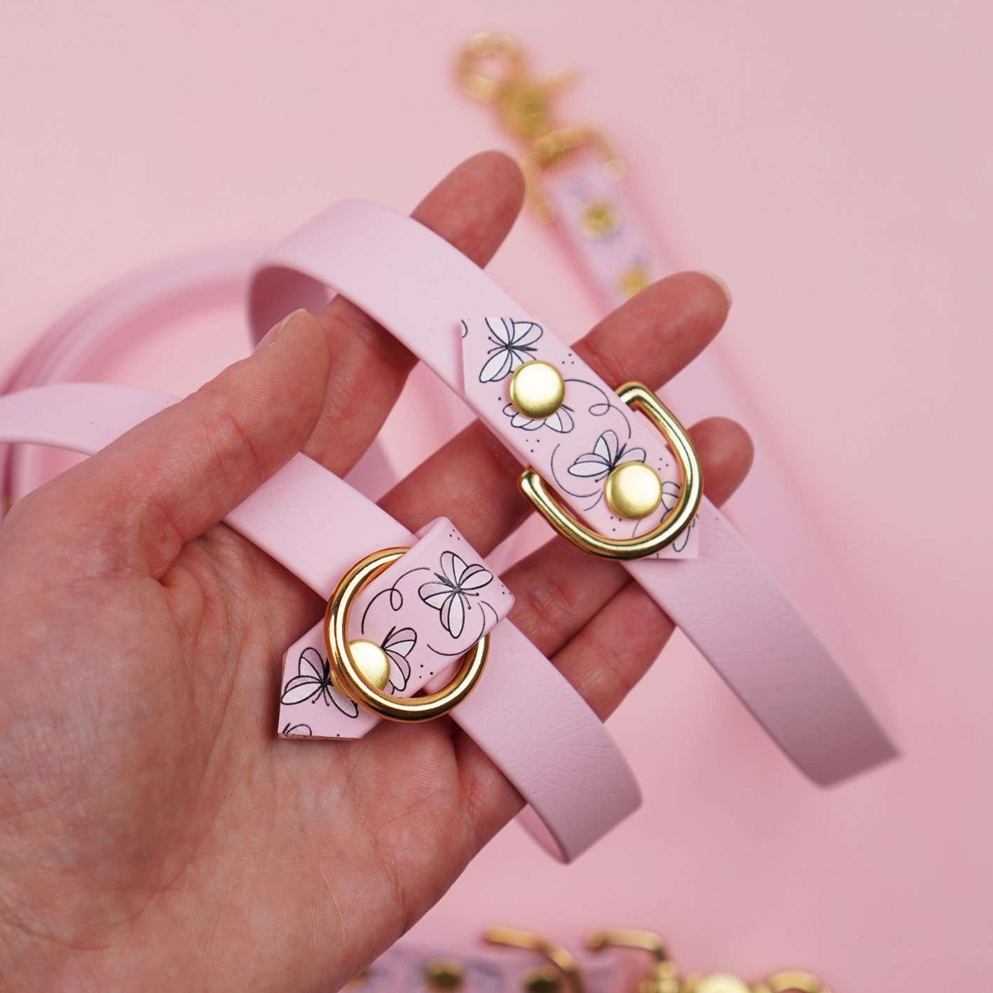 Smycz przepinana multifunkcyjna z Biothane dla psa Motyle / pudrowy róż, bordo