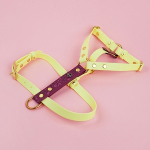 Szelki guard dla psa z Biothane Łąka / bordo, pastelowy żółty