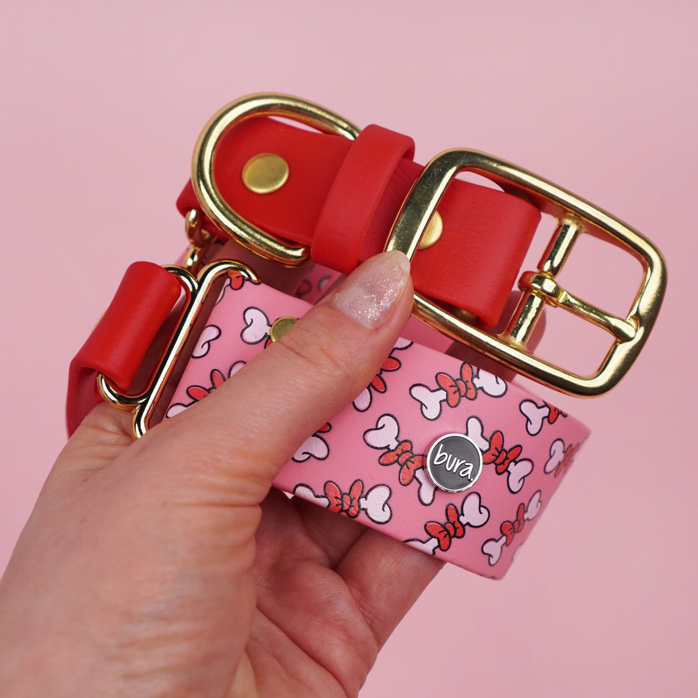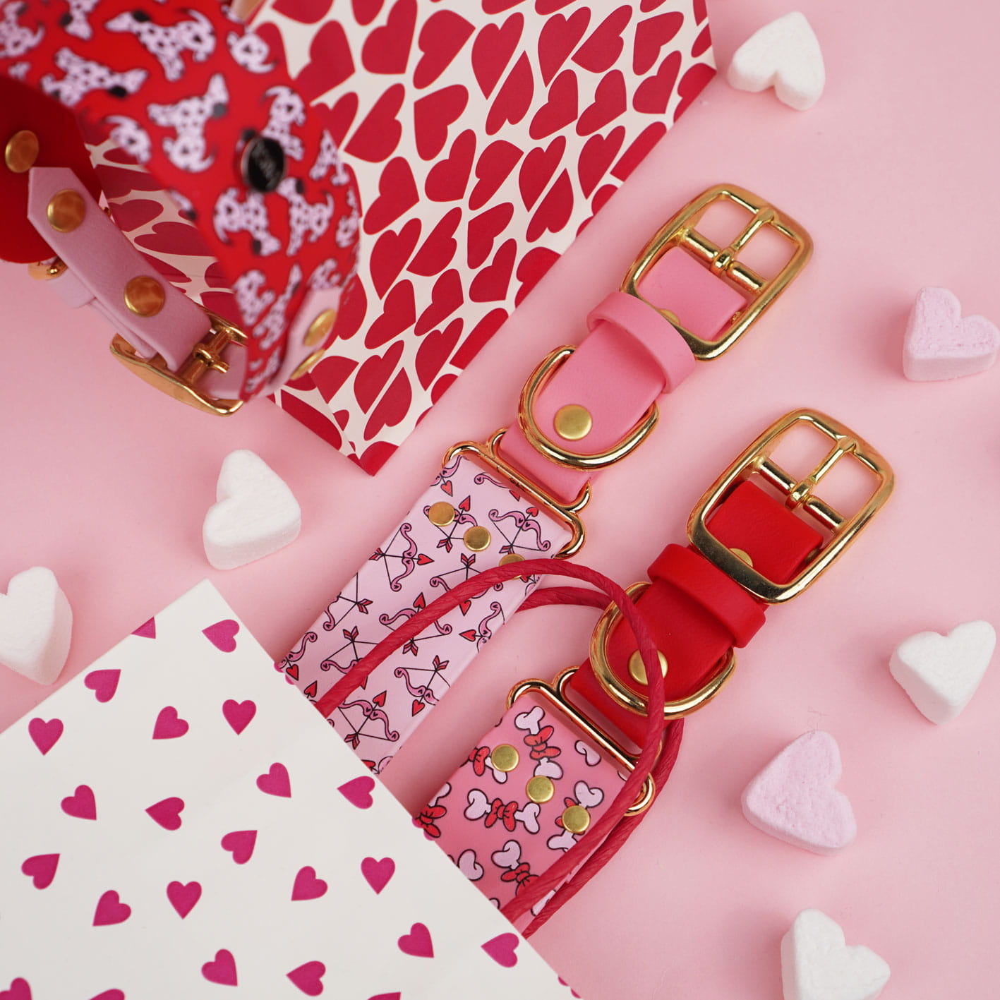 Szeroka obroża Bombonierka Azora / czerwony, pastelowy róż